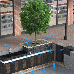 Fast, light, strong. The RD Riser from GreenBlue Urban. Root control building block system for deeper surface and subbase layerworks designs eliminating the need for concrete.